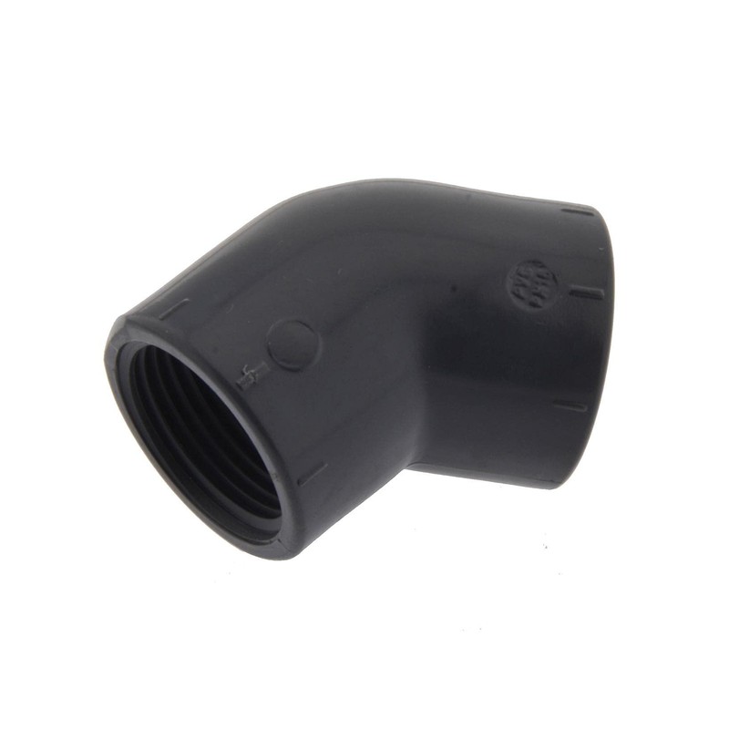 45° Angle with 2x Internal Thread Rp 1 1/2 Inch, Only for Plastic Thread, PVC-U 16 Bar