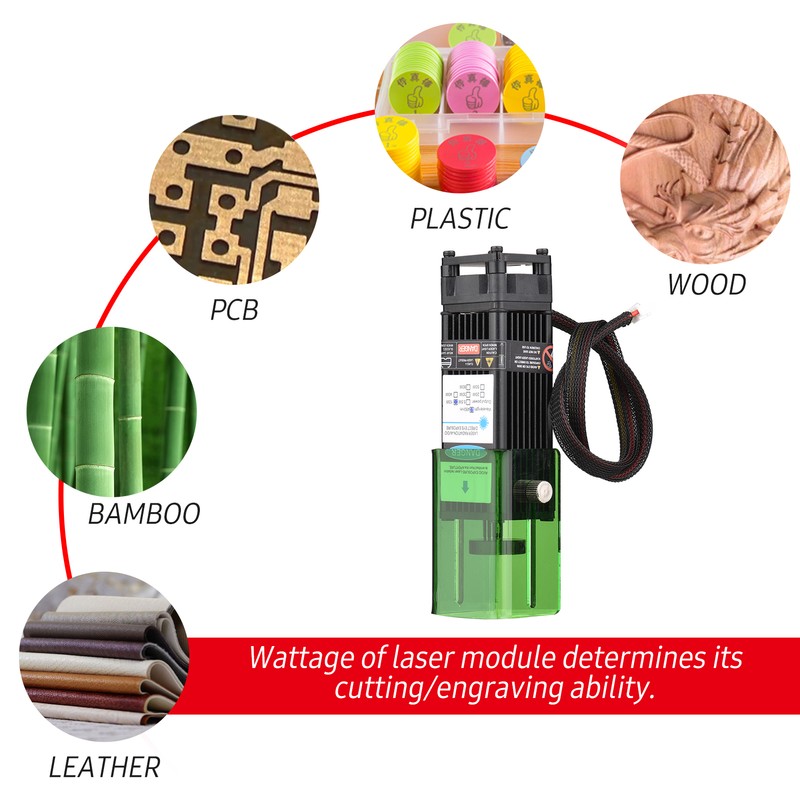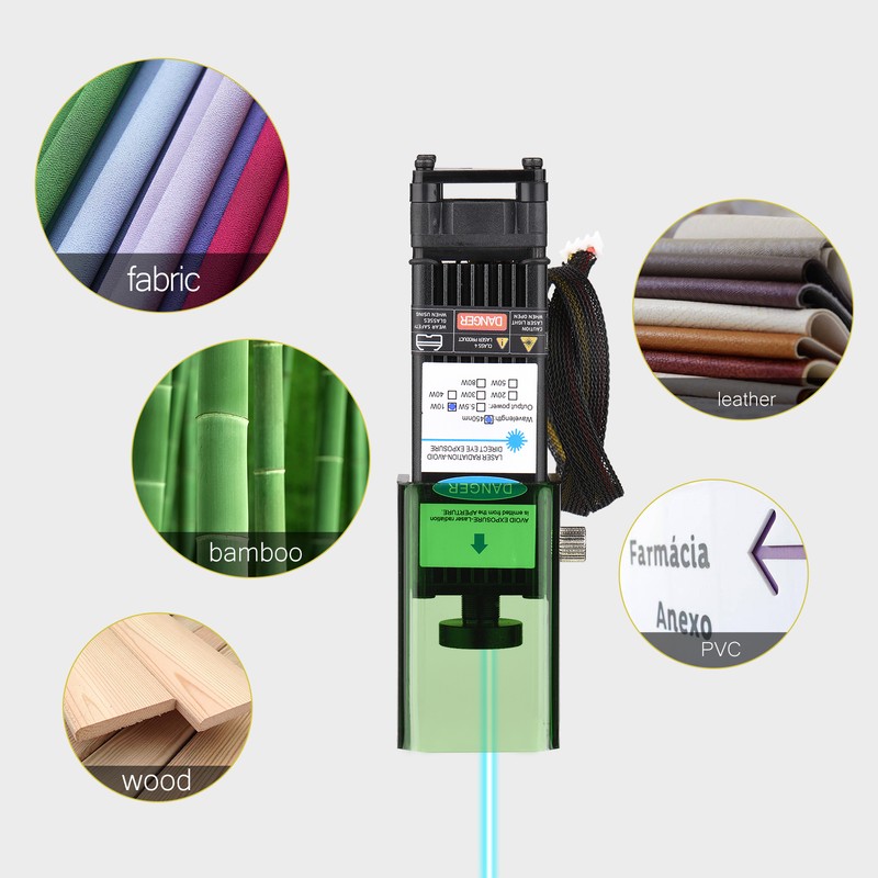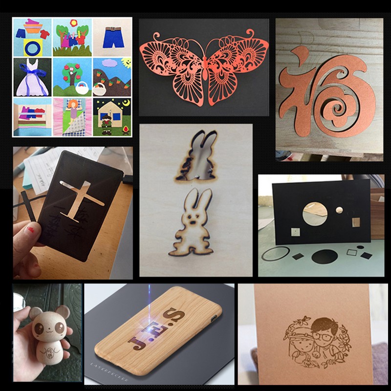 It can engrave paper, wood, fabric, plastic, leather, anodized aluminum, etc. Different laser modules for engraving/ cutting different kinds of material and different thicknesses.