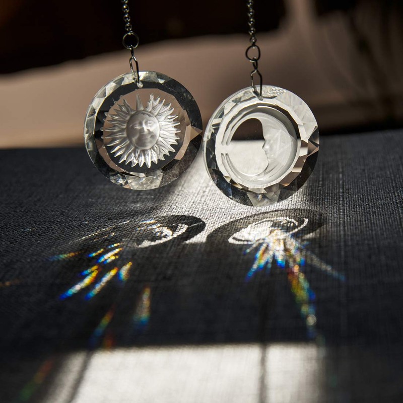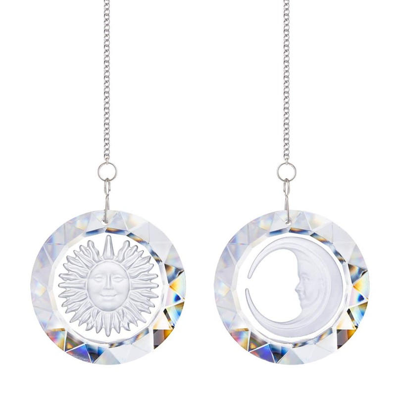 45mm Crystal Suncatcher Round Pendant Rainbow Maker for Home Car Decor (Moon and Sun)