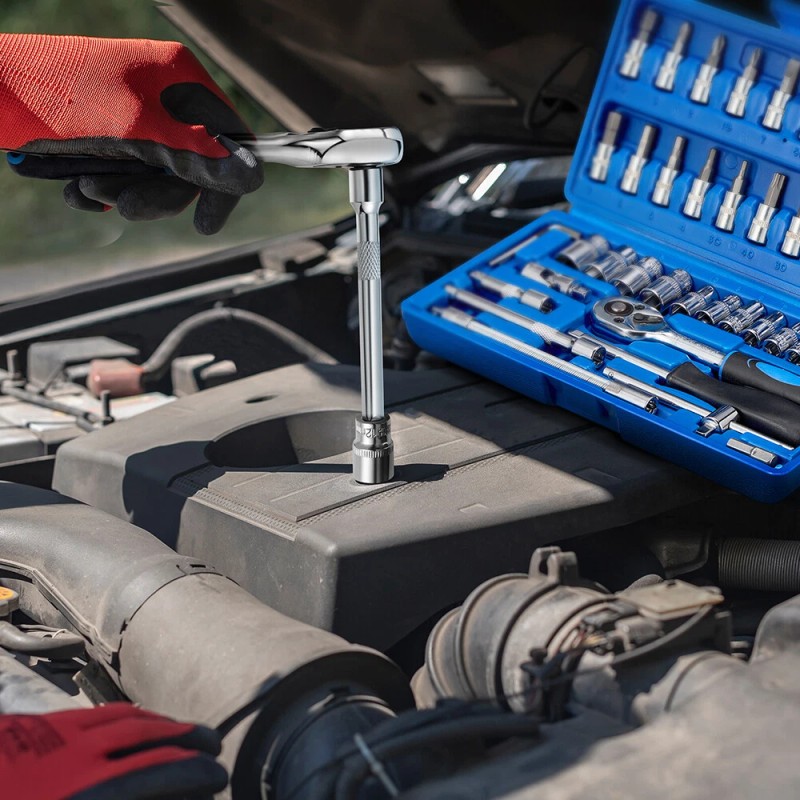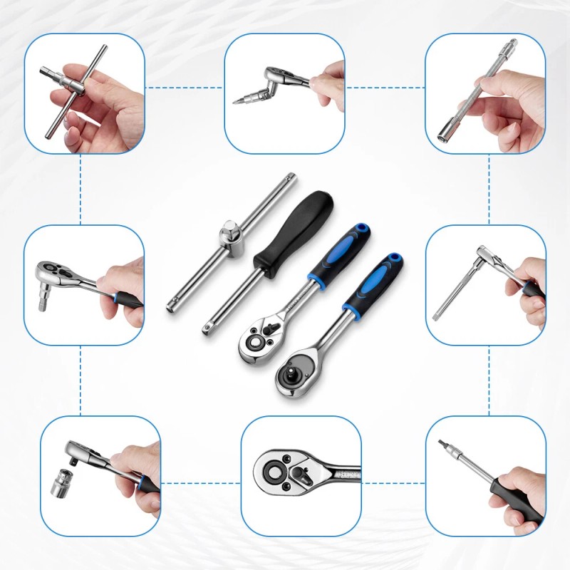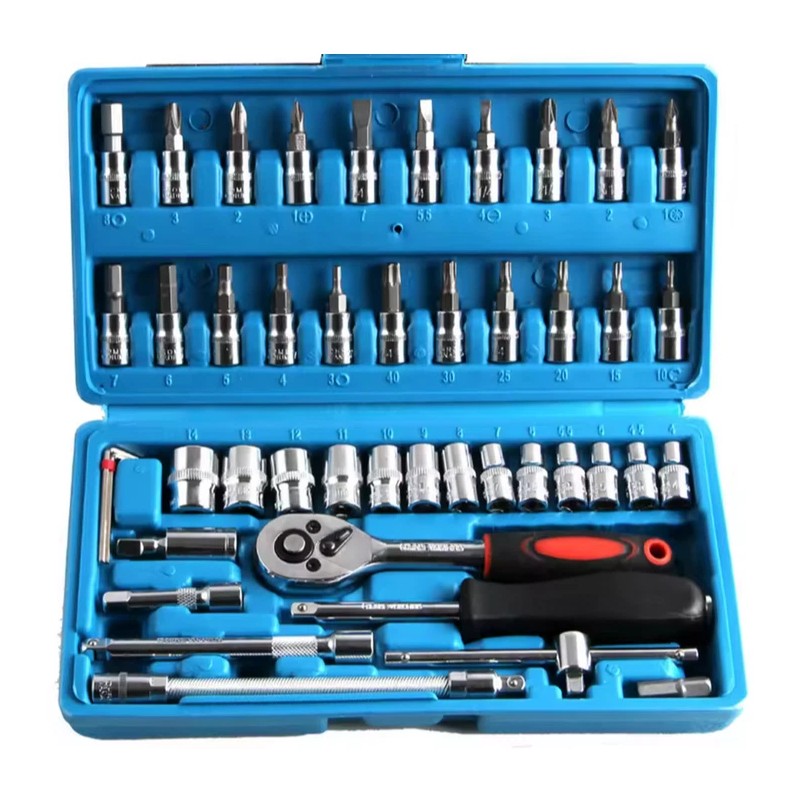 46PCS Socket Spanner Tool Kit Ratchet Wrench Set METRIC/SAE 1/4" Drive w/Case