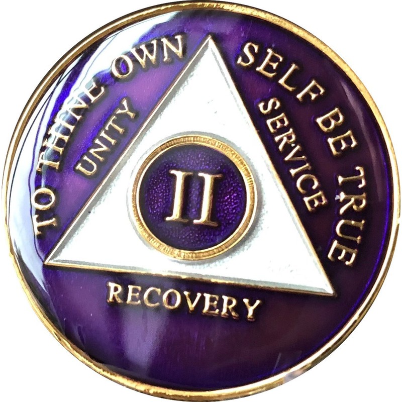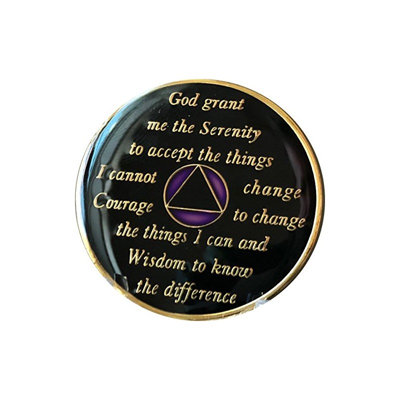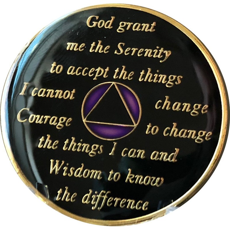 Year AA Medallion Purple Tri-Plate Sobriety Chip. Glass Like Epoxy Dome with Serenity Prayer on back. 34x3mm Size