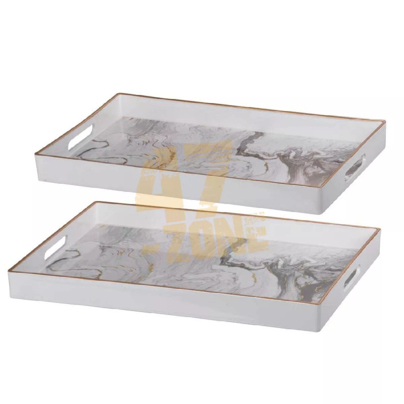 47-Zone Plastic S/2 Effra Rectangular Trays White Marbled Indoor Tabletop Home Decor