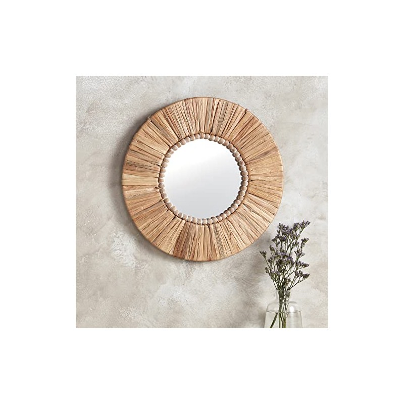 - ROUND HANGING MIRROR: A rattan frame and intricate, eye-catching details make this boho style wall mirror a stunning focal point in your home