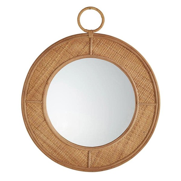 - ROUND HANGING MIRROR: Wall mirror with a stylish woven rattan design; adds a stunning focal point to any room