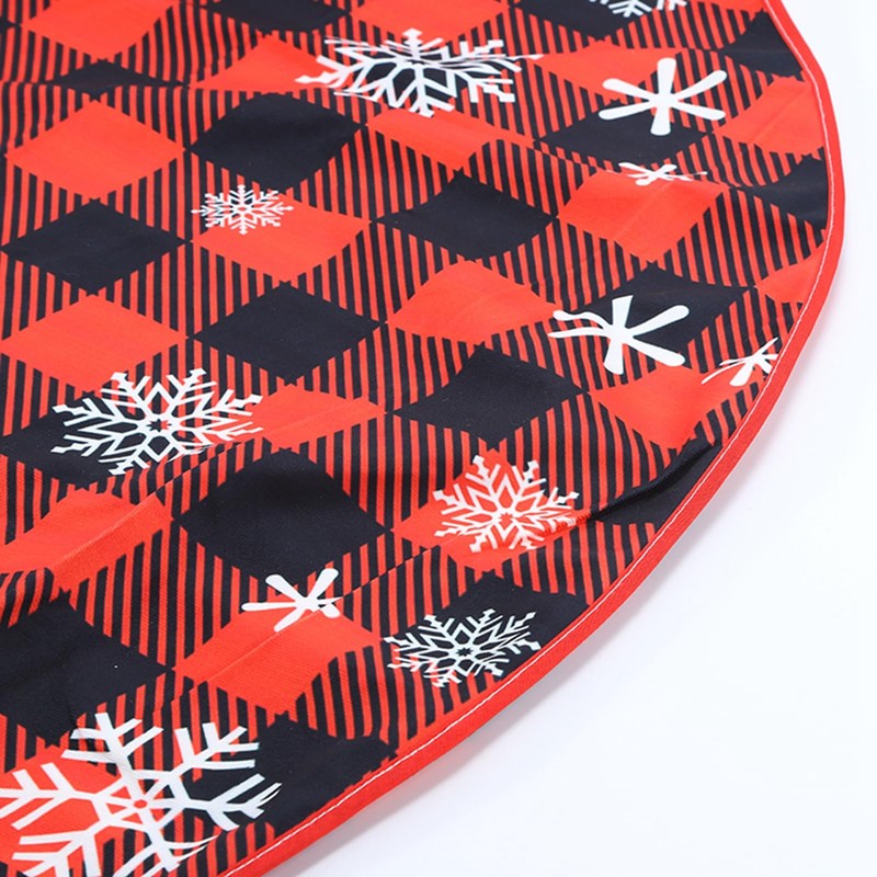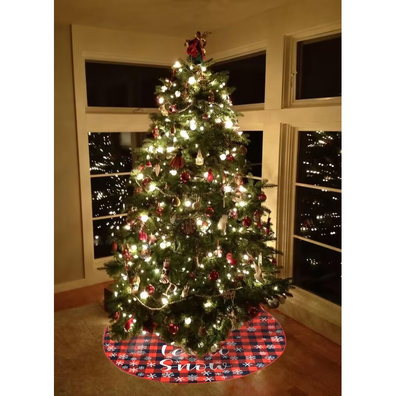- CHRISTMAS TREE SKIRT :This Xmas tree decoration include 1 x 48 inch red and black buffalo checked tree skirt, 2 x 5cm/2inch plastick snowflake,2 x 7.5cm/3inch snowflake,2 x 10cm/4inch snowflake,perfect for most Christmas Trees, adding wonderful winter spirit to your Christmas decoration and atmosphere