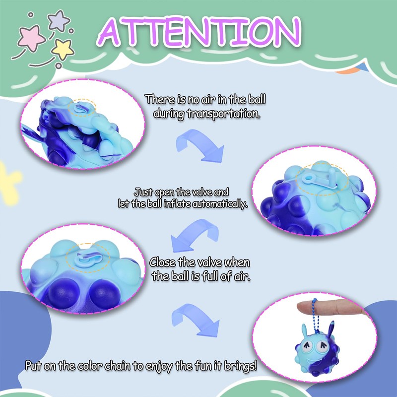 - ANIMAL POP IT FIDGETS BALL TOYS: We have added a new valve to the ball, You don't have to worry about leaking air, you just open the valve to inflate the ball and then close the valve, the ball will be full of gas again! This design will help you store the ball better and save volume. In addition you can also hang the chain on the ball, it will be the perfect decoration. More fun than regular pop fidget ball!