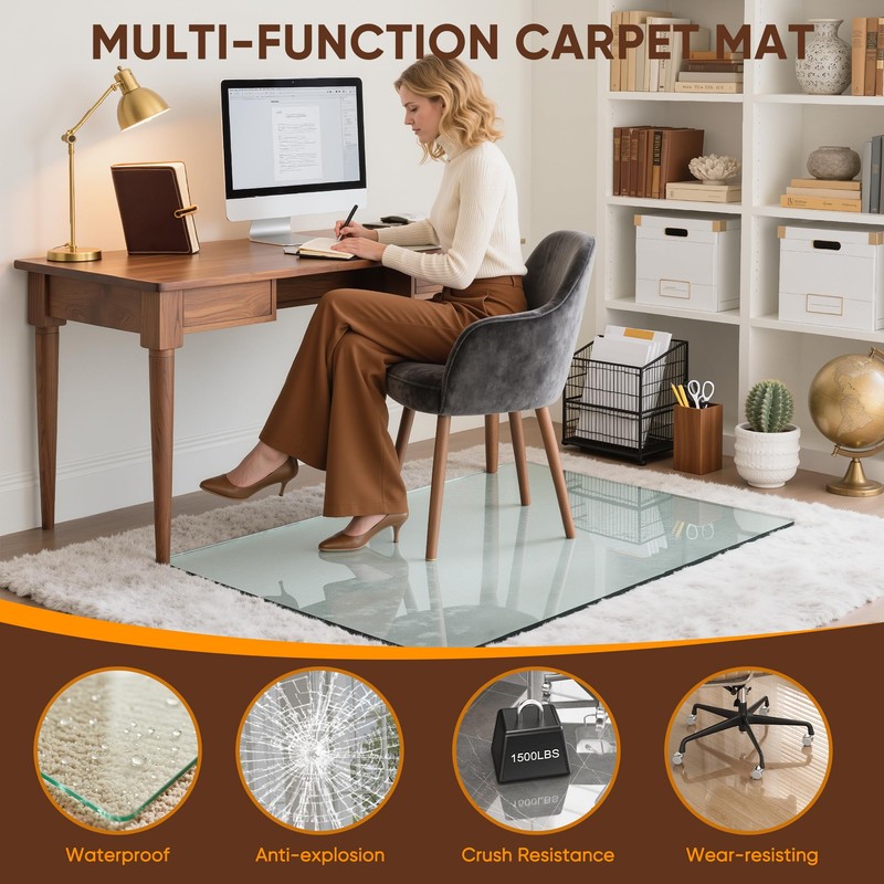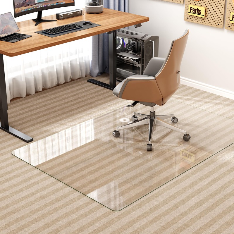 - Effortless Cleaning & Low Maintenance:Just wipe with a damp cloth—no stains, no hassle! Unlike fabric or plastic mats, this glass mat repels dust, spills, and dirt, keeping your space spotless with minimal effort.Engineered for heavy daily use in both home offices and commercial spaces, with reinforced edges to prevent chipping or shattering under normal use conditions