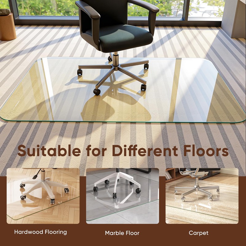 - Premium Shatter-Resistant Tempered Glass: Crafted from high-grade tempered glass, this floor mat is 5x stronger than regular glass, ensuring durable, long-lasting protection against cracks and breaks. Perfect for heavy office chairs or furniture, it prevents scratches, dents, and floor damage while maintaining a sleek, modern look.