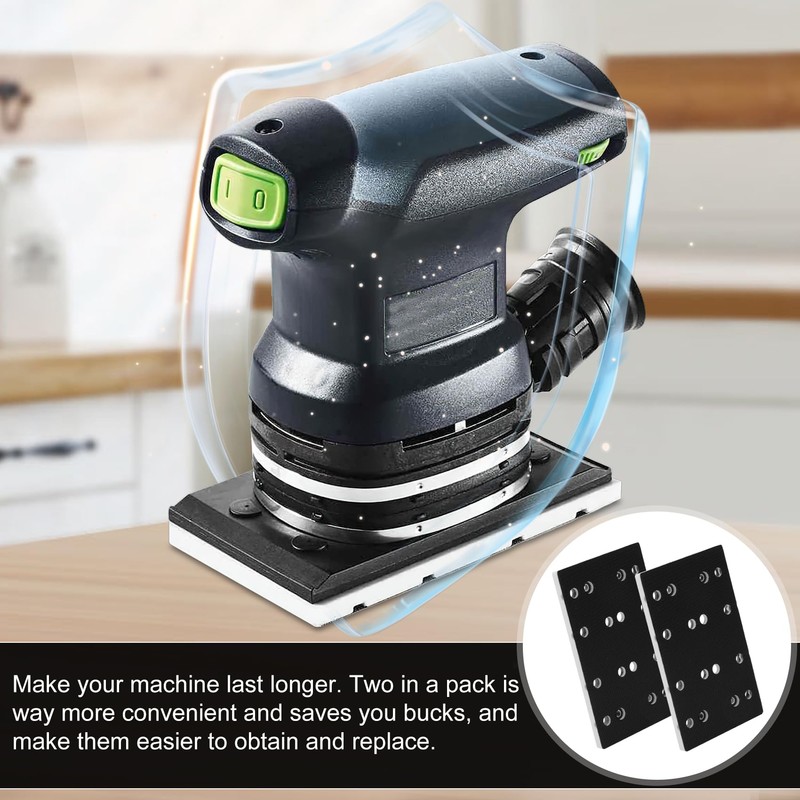 - Product Function:Sanding pads designed with stick fix hook and loop design, efficient and fast abrasive change. 489252 sander replacement pad dimensions of 80x133 mm are the perfect fit for your festool RTS 400 RS 400 RTSC 400 orbital sander.Homogeneous and high-density hooks have strong stickiness and a long service life.Jet stream design provides efficient dust collection, resulting in cleaner air, better finish, and longer abrasive and underlay life.16-hole design collects dust effectively.