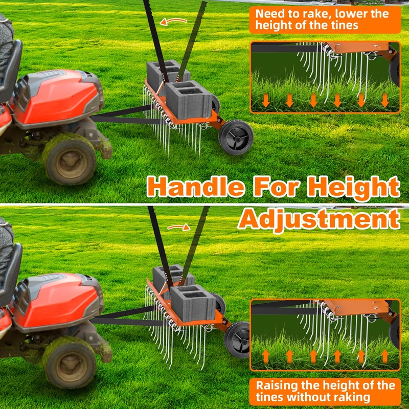 • 🌸【NOTE】Depending on the raking effect you need, add weight appropriately to ensure the desired effect.Before you buy that lawn rake cart, double-check that there’s a good spot at the back of your vehicle to attach it. Safety first, make sure to be careful while putting it together and using it to avoid any scrapes or injuries.