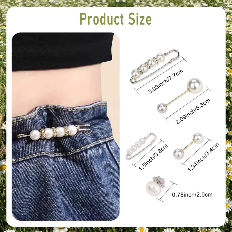 - ✨【Perfect Fit】Say goodbye to ill-fitting clothes, get the perfect fit with no-sew jean buttons pins. Exquisite pearl brooches can also be used as decorations for clothes.
