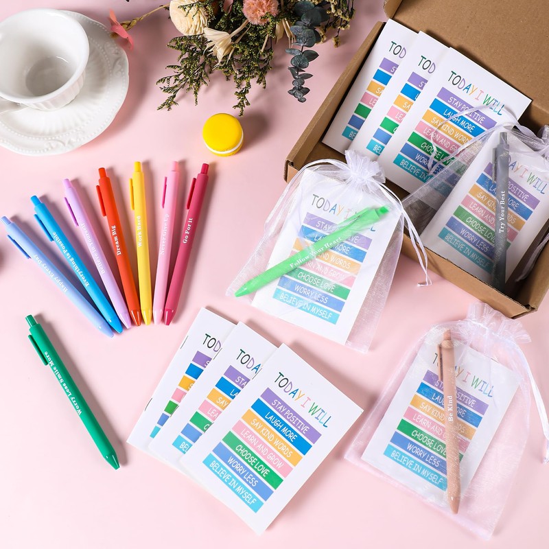 - Motivational Gift Set: the package comes with 72 pieces of inspirational gifts, including 24 pieces of inspirational pens in 12 classic colors, 24 pieces of inspirational mini notebooks and 24 pieces small white bags, enough amount can meet your various needs