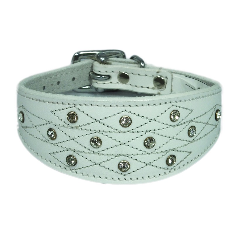 4doggies 10-12 Inch White Italian Greyhound Leather Collar Diamante Stiching Design