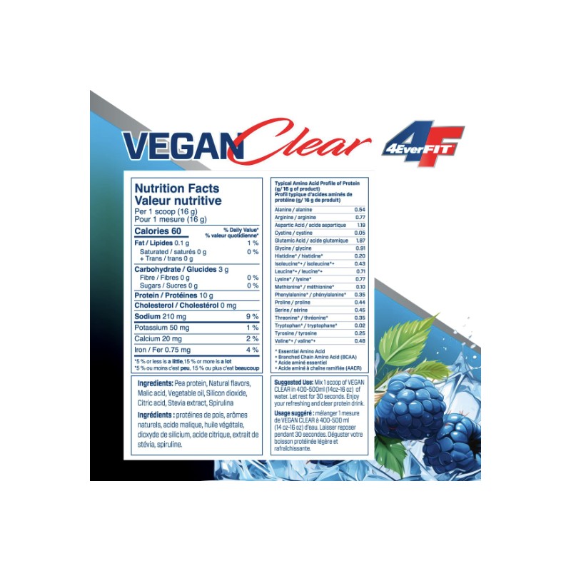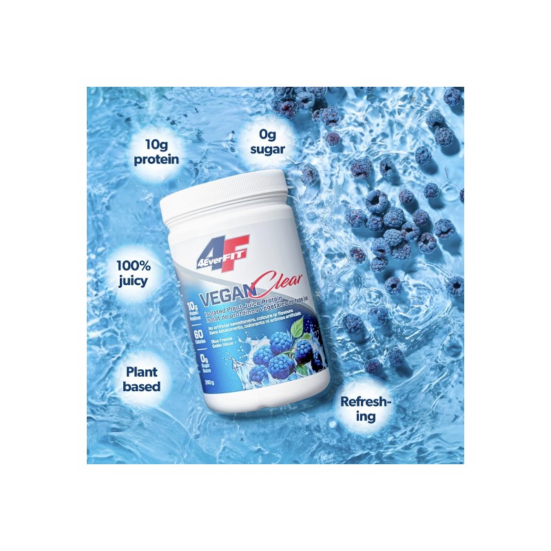 4EverFit Vegan Clear Protein, Low-calorie, Sugar-free, Plant-based, Gluten-free, Non-chalky, Grit-free, Light Clear Juice, Blue Freeze Flavour, 15 Servings, 240g