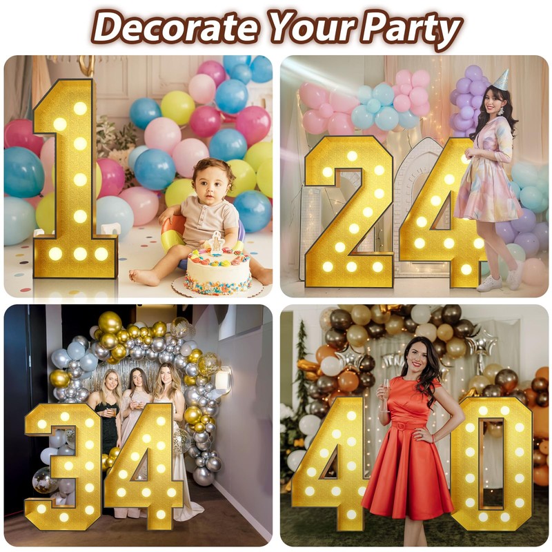 - String Lights with Warm Light: Our light up number 2 comes with a string of easy-to-install warm light bulbs that add a soft, inviting glow to your party decor. The warm light creates a warm, festive atmosphere perfect for any occasion.