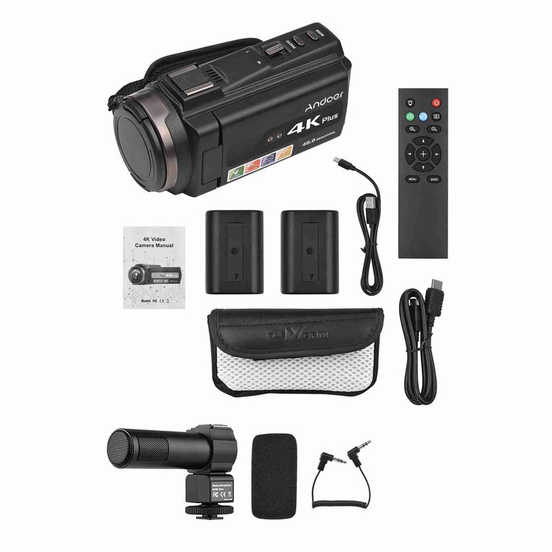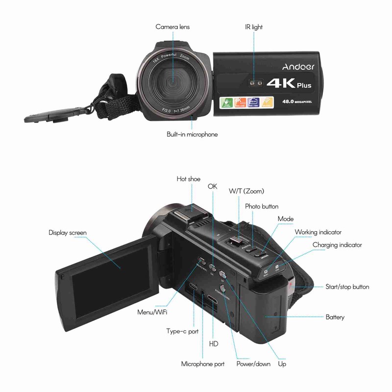 1、4K/60FPS high video resolution, 48MP(8000 * 6000) super high image resolution, infrared night vision, 6 axis image stabilization, can take pictures and record videos super clearly at both bright and dark condition. 2、3 inch capacitive touchscreen offer vivider vision and quicker response; WiFi function provides quick wireless transmit; maximum 128GB TF card extended memory, enough for long time recording. 3、The external microphone with 3.5mm port, stereo and cardioid pickup pattern, can pick up sound clearly. 4、Professional multifunctional digital camcorder, also support other functions like 16X digital zoom, face detection, motion detection, and more; compact size and light weight, convenient for carrying and long-time handheld use. 5、Equipped with 2pcs 2000mAh large capacity lithium battery, has long working time; also comes with a remote control for more convenient operation, flexible to use.
