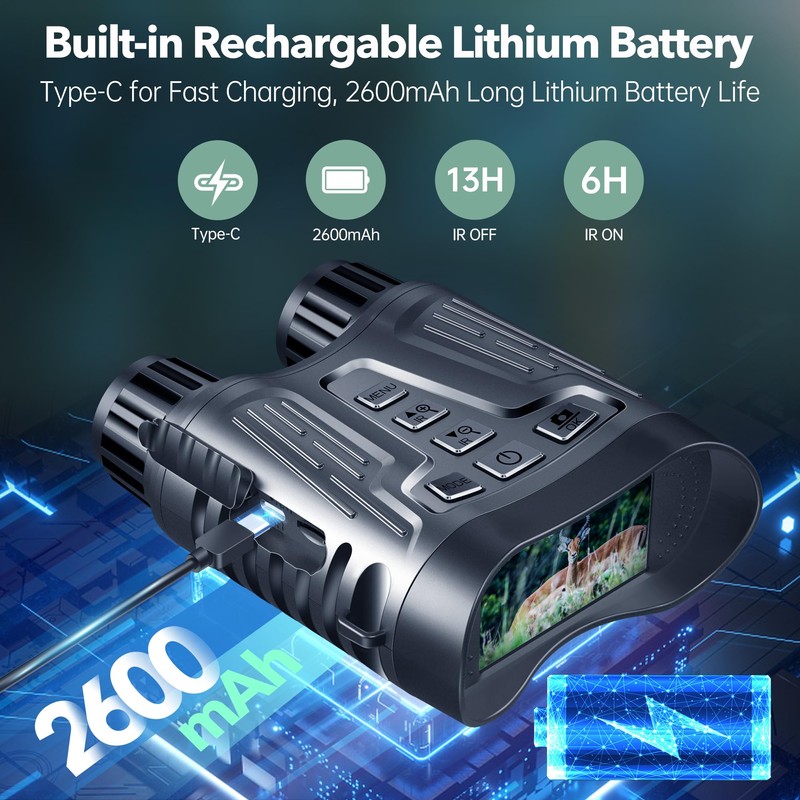 • 【IP54 Water-Resistant & Tripod Supported】 The night vision binoculars with IP54 waterproof and rugged design can withstand extreme weather conditions and challenging terrain, easily capturing views even in light fog or light rain. It also supports a 1/4 "tripod, free your hands and store your adventures on the included 32GB memory card.
