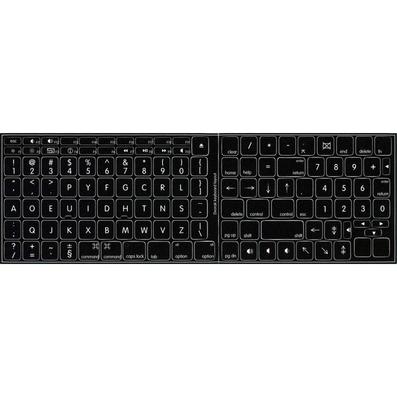 4Keyboard MAC Dvorak Keyboard Sticker Black Background for Desktop, Laptop and Notebook