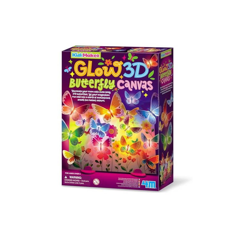 4M KidzMaker 3D Glow Butterfly Canvas, Create Your Own Light Up Butterfly Artwork, Arts and Crafts Kit for Boys and Girls Ages 5+