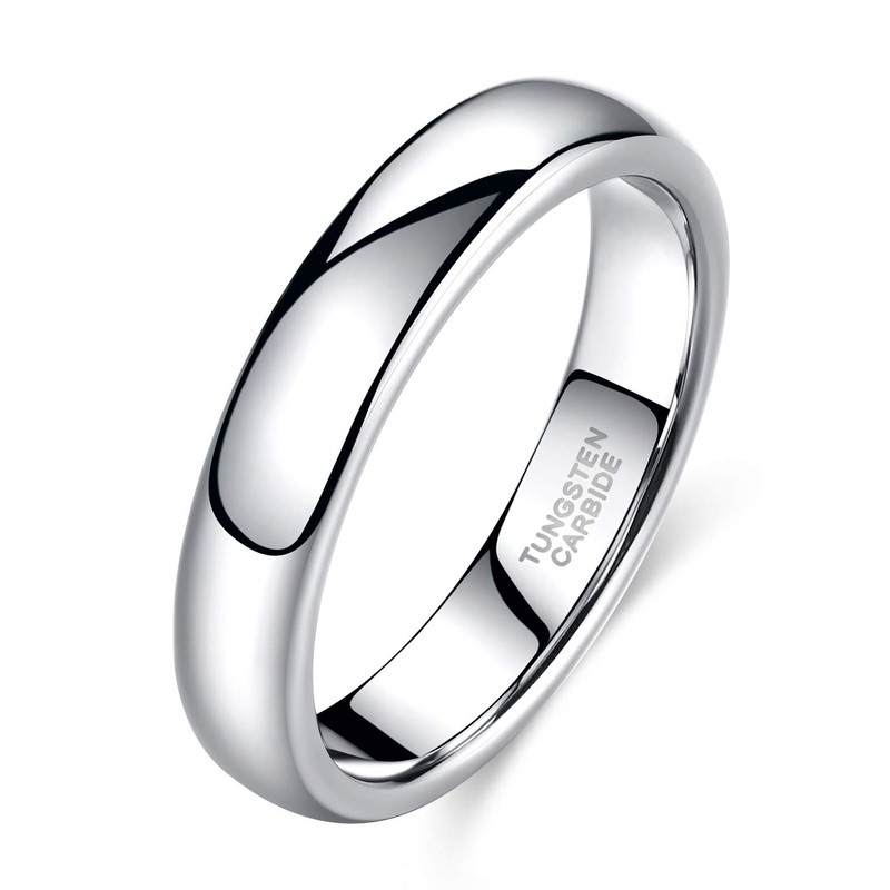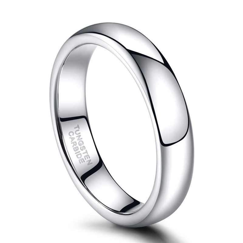 4mm Tungsten Wedding Band Ring for Women Plain Dome High Polished Comfort Fit Size 7