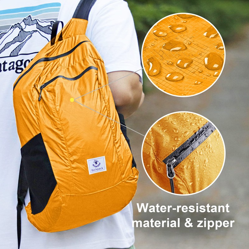 - 【Water resiatant portable backpack】The packable backpack waterproof is great for hiking in light rain,quick-dry ultralight daypack makes you feel comfortable.The 30D Nylon fabric and YKK zipper protect your things from rain fall and water drop.