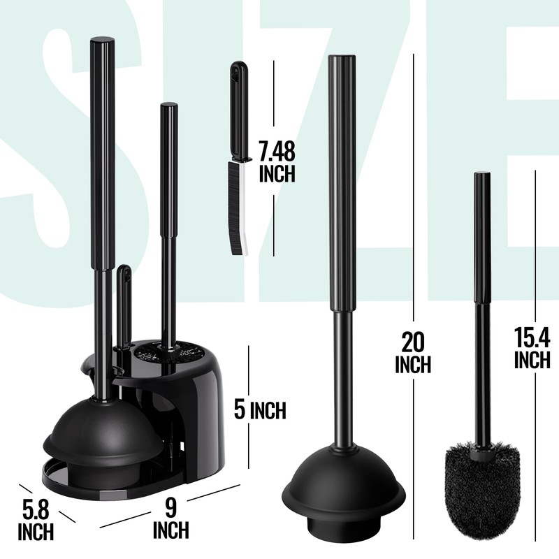 - 3-in-1 Toilet Brush and Plunger Set: Combines a scrub brush for stains and a power plunger for clogs in one compact kit. Plus, receive a crevice cleaning brush to tackle hard-to-reach areas. Save space and tackle all toilet issues without switching other tools