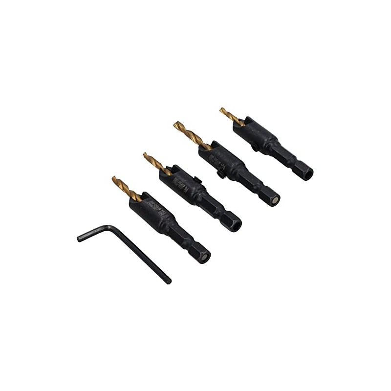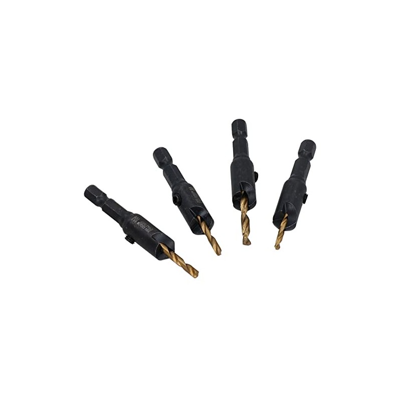 Set of 4 countersinks with pilot drill bits and depth adjustment