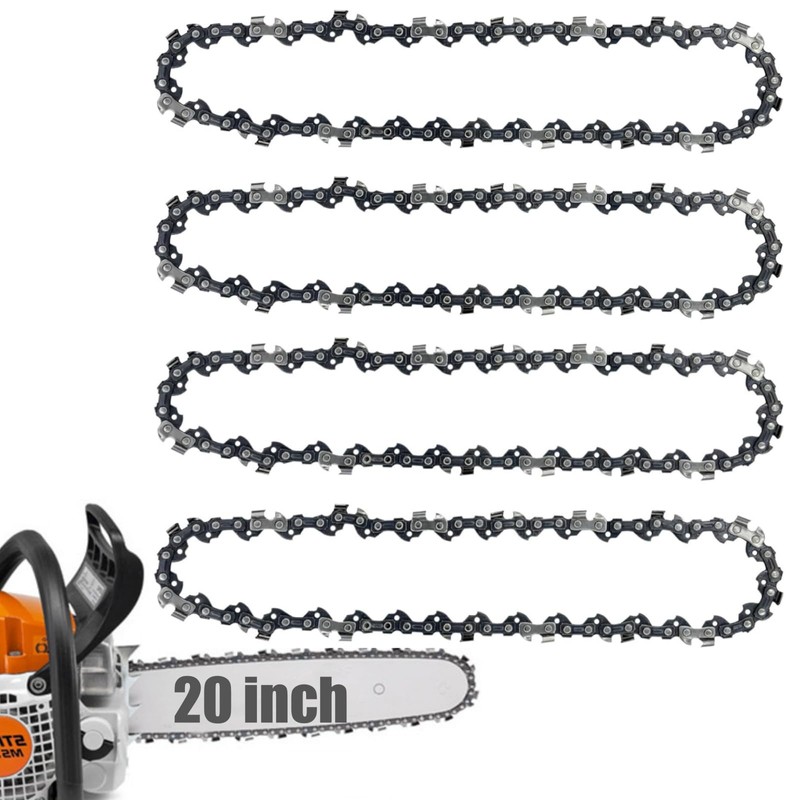 - 20 inch Chain Saw Chain Size: Package: 4pcs, 72 drive links, 20 inch (51 cm) bar length, 3/8 inch LP pitch, 0.050 inch (1.3 mm) gauge. There are many other drive links on the market, as well as multiple sizes of bar lengths and pitches, so please double check the lengths and links you need before purchasing