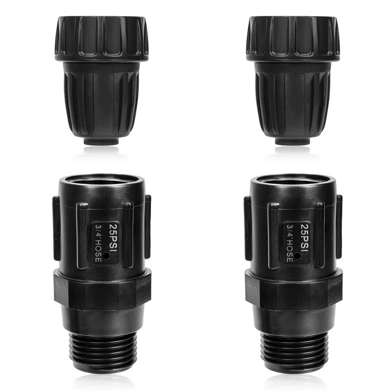 - Packing List: The package includes 2 pieces of 3/4" FHT inlet x 3/4'' MHT outlet pressure regulators (25 PSI preset) and 2 pieces of 1/2" irrigation tubing adapters, designed for easy connection to standard outdoor faucets, hoses, or irrigation systems to regulate incoming water pressure.