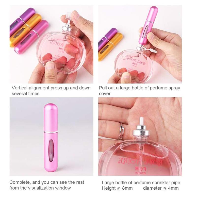 Refillable: Each atomizer bottle can be filled up to 5ml with your favorite perfume or cologne, making it easy to switch up your scent on the go.