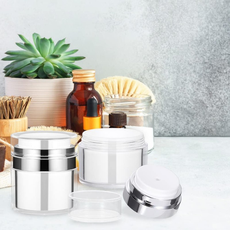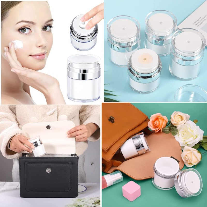 - 【Perfect For】Airless pump jar travel containers are perfect for lotions and creams,skincare cream,moisturizers,foundation,serums and DIY skin care products.