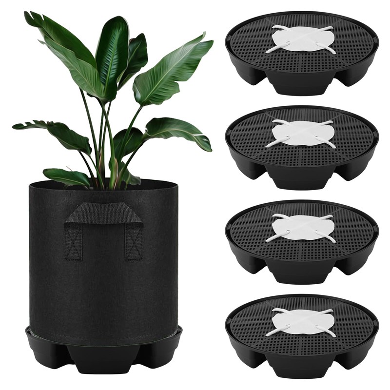 4pcs Auto Plant Watering Devices, Plastic Self-Watering Base with Cotton Fabric & Rope Automatic Autopots Water Planter Saucer Stand Trays for Greenhouse Indoors Grow Tents Grow Bags Accessories