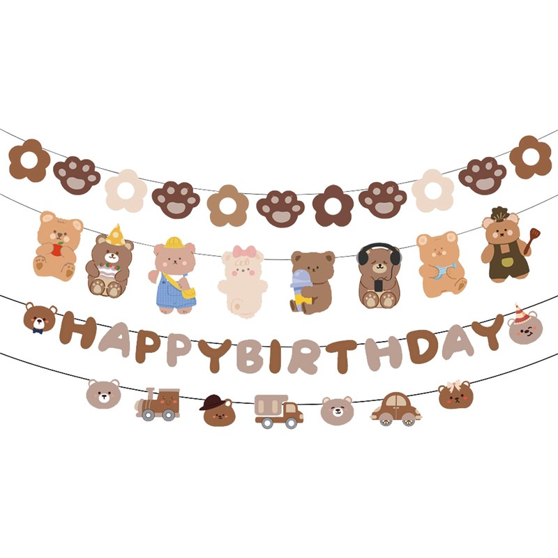4PCS Bär Happy Birthday Girlande Banner CHUNLINLAODA-Bär Deko Geburtstag Girlande Set Bä/r Girland/e Geburtstag Mädchen Junge Deko Geburtsta/g für Erwachsene Kinder Mädchen Frauen (braun)