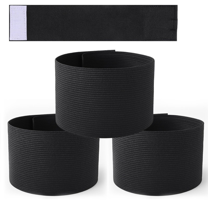 4PCS Captain Armbands, 7x33 CM/2.75x13 Inch Black Elastic Arm Band Adjustable Leader Armband Funeral Mourning Band Team Sport Armband for Adult Youth Soccer Volleyball Football Rugby Basketball Player