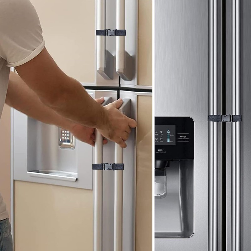 - Buckles Design: Simplify your life with our child safety locks - a design complex enough to keep the kids out but easy for adults to use with one hand. Just a light press on the button to open these adjustable child safety fridge door locks.