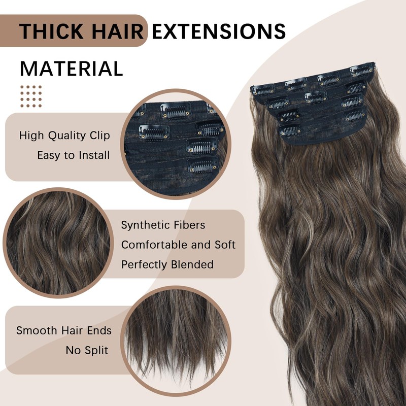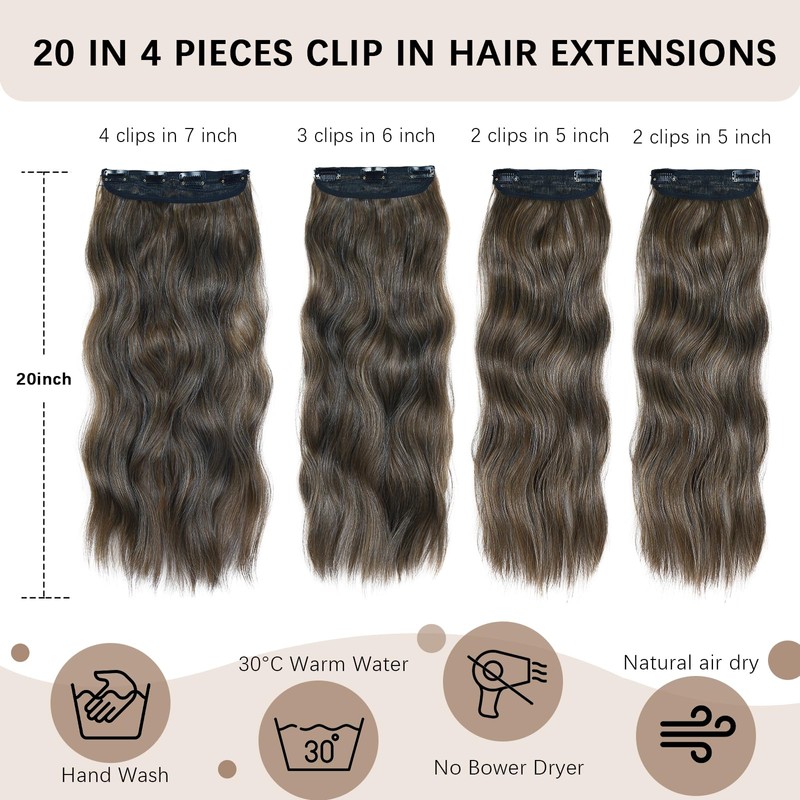 - 25 colors Clip-In Hair Extensions: The 4PCS 20-inch hair extensions clip-ins add an elegant touch to your look, and the wavy texture blends seamlessly with real natural human hair. Just a BB clip, which will not damage the scalp. It only takes a few minutes to put on and remove.