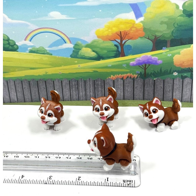 4pcs Cute 3D Printed Baby Husky Chibi Edition, 3D Printred Dog House, Brown Articulated Baby Husky Toy, Posable and Movable Head and Joints Animal, Fidget ADHD Autism Toy CH001-BRN-RH