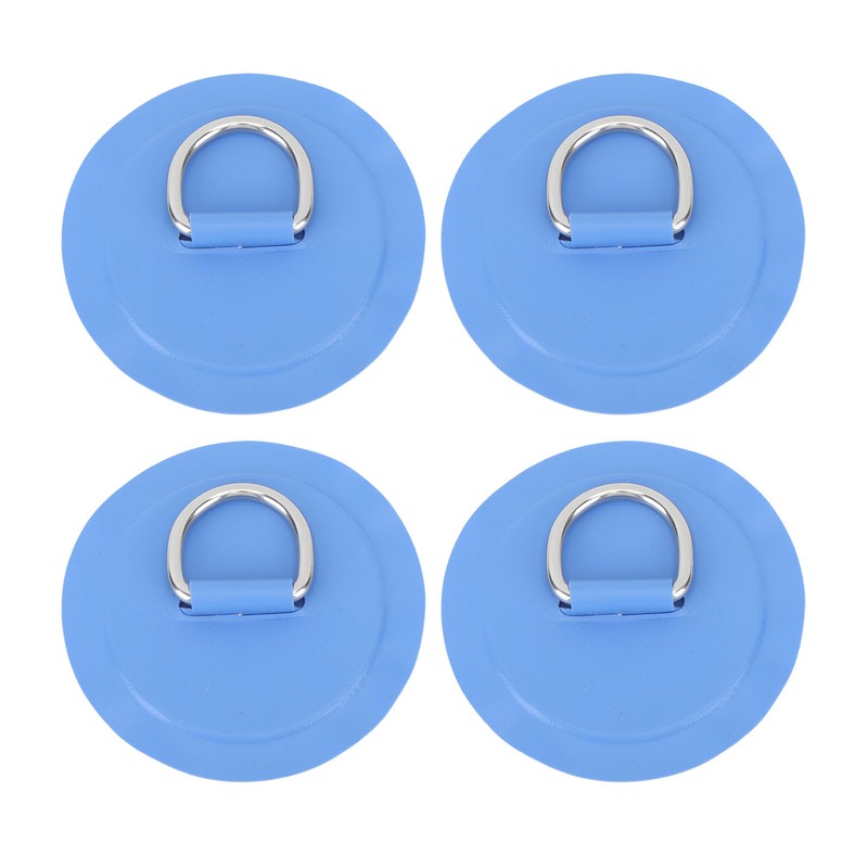 4PCS D Ring Patch PVC Round Shape Strong Stainless Steel D Ring Pad for Boat Raft Paddle Board Blue