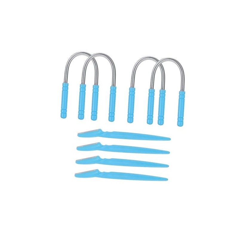 4pcs Eyebrow Razors and Facial Spring Epilator Set Portable Manual Face Hair Trimmer for Women Quick and Precise Hair Removal Tool Blue Kit for Smooth Skin