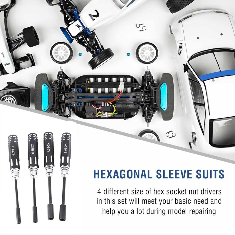 • WIDELY APPLICABLE CONVENIENT : This incredibly useful hex socket nut driver set is versatile , and it can make every handyman's job a breeze . Ideal for repairing or assembling RC cars , model airplanes , and many other DIY projects , they promise the utmost convenience .