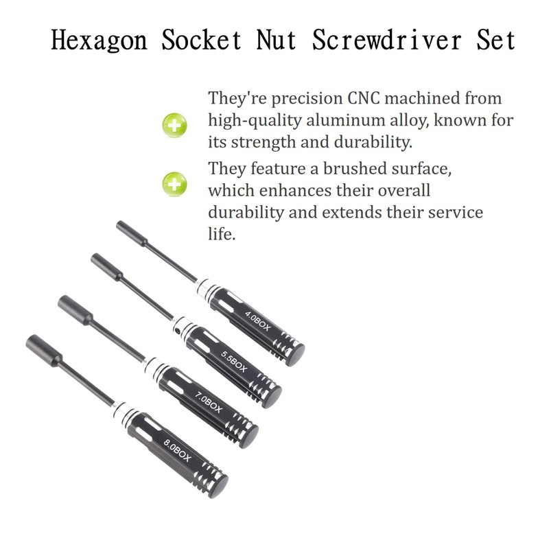 4pcs Hex Socket NUT Driver Set Hex NUT Drivers Screw Driver Tools Kit Set Metal 4 0/5 5/7 0/8 0mm NUT Key Socket Screwdrivers for Rc Helicopter Rc Boat Rc Cars