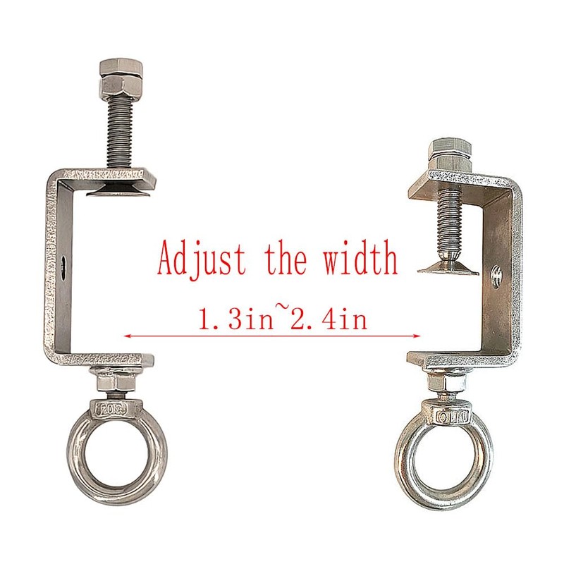 - - **Versatile Clamping Range** = With a clamping range of 1.3" to 2.4", these C-clamps can easily fit onto various beam sizes, while the M10 screw holes allow for easy attachment of the included stainless steel rings.