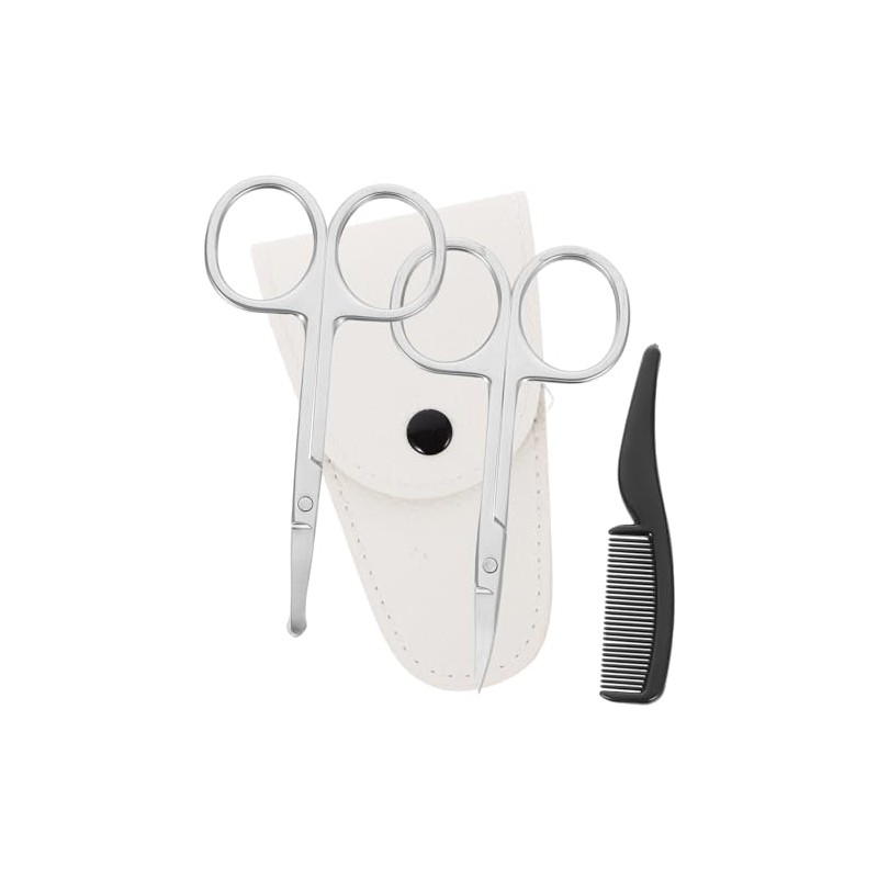 4pcs Precision Beard and Nose Hair Scissors Set Stainless Steel Grooming Kit Pointed and Round Scissors White Leather Comb for Home and Salon Use