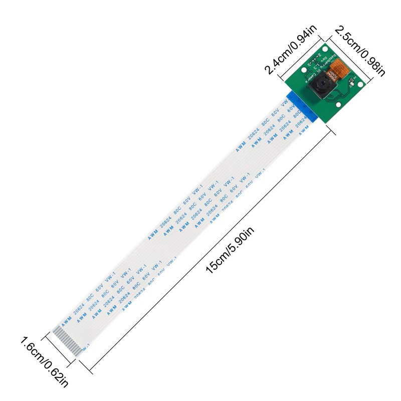 - 15 Pin Ribbon Cable -- 15-pin MIPI camera serial interface - plugs directly into the Raspberry Pi board; The camera module size: 25mm×24mm×9mm, making it perfect for mobile, you can be applied to image recognition and image tracking, etc.