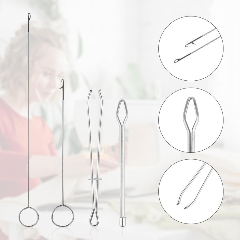 - Product Size: The open rope threader clip is about 8cm/3.15 inch in length, and the closed waist band threader is about 6.7cm/2.64 inch in length. The long loop turner sewing tool is about 26.5cm/ 10.43 inch in length and the short loop turner sewing tool is about 17.5cm/6.89 inch. They are lightweight and easy to store.