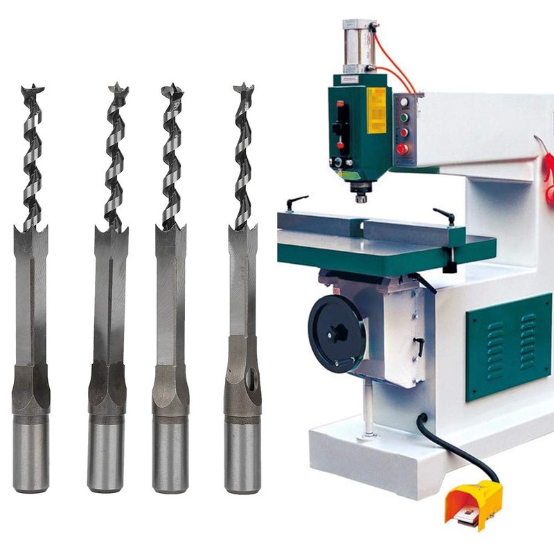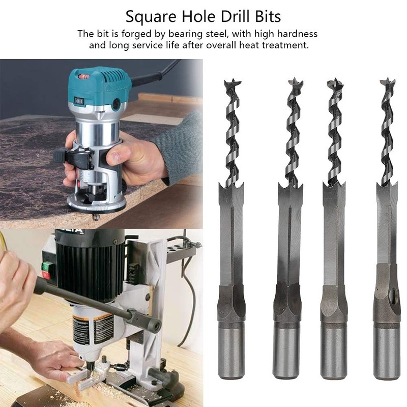 4pcs Square Hole Drill Bits, Woodworking Square Hole Mortise Drill Bit 11 to 12.7mm Woodworking Spiral Mortising Chisel Drill Bit, Quickly Install or Disassemble