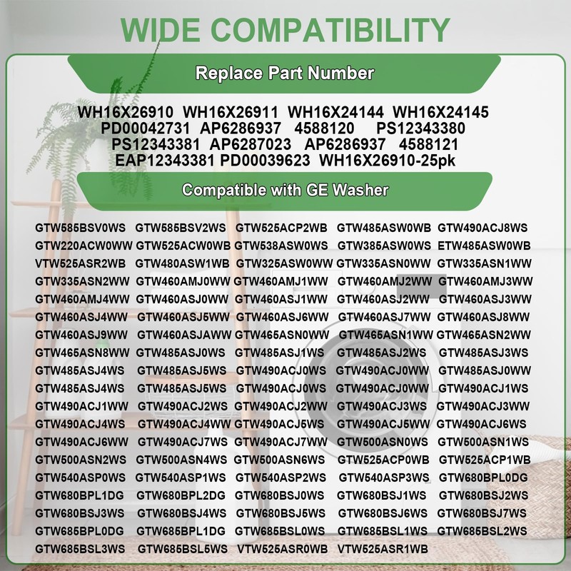 • WIDE COMPATIBILITY: The WH16X26911 WH16X26910 washer suspension rod kit is compatible with GE HotPoint RCA Sears Kenmore etc brand. Compatible with GE models: GTW335ASN1WW, GTW335ASN2WW, GTW460ASJ5WW, GTW460ASJ8WW, GTW465ASN1WW, GTW680BSJ5WS, GTW680BSJ3WS, GTW680BSJ0WS, GTW335ASN0WW, GTW460ASJ6WW, GTW460ASJ7WW, , and other models. You can find the detailed model number in the third picture . The A+section below has all models, If you are unsure, you can write an email to us for consultation.