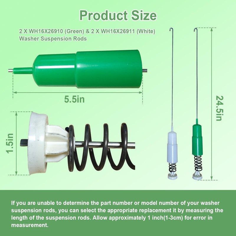 • WH16X26911 WH16X26910 Replace Part Number:WH16X26910 WH16X26911 washer suspension rods replace part number WH16X24144, WH16X24145, WH16X26910-25PK, AP6286937, AP6287023, 4588121, PS12343381, EAP12343381, PD00039623, PD00042731.