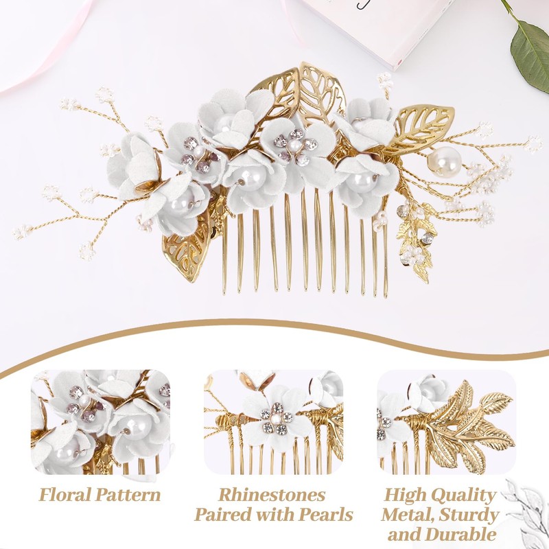 - [Exquisite Design]: Our bride hair accessories feature a simple yet elegant design, handcrafted from high-quality alloy and adorned with fabric flowers, rhinestones, and pearls, ensuring a beautiful and unique look for your special day.