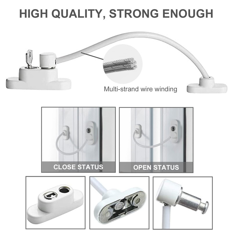 - Window Safety Locks: High quality cable limiter, which limits the opening distance of doors and windows, is specially designed for the safety of little baby/children. Help reduce the risk of falls. Window restrictor ideal for ensuring the safety of your child or pet